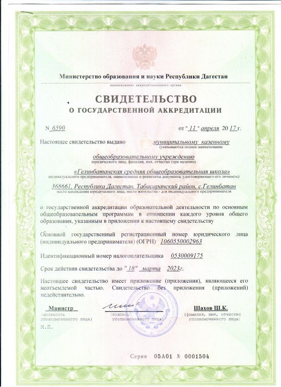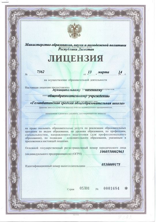 | Полное наименование образовательной организации* | Муниципальное казенное общеобразовательное учреждение "Гелинбатанская средняя общеобразовательная школа" |